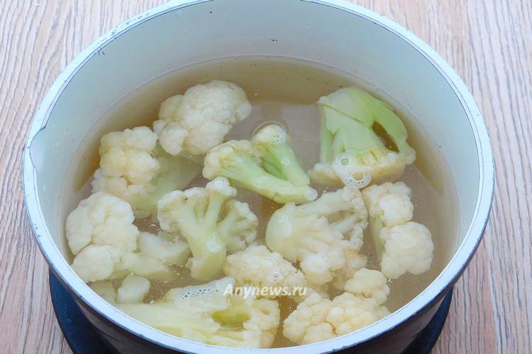 Соцветия капусты (свежие или замороженные) опустить в кипящую воду.