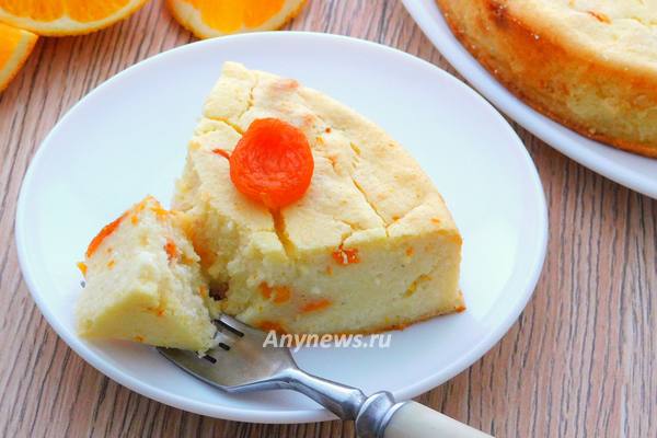 Творожная запеканка с курагой готова. Подавать в теплом или остывшем виде.